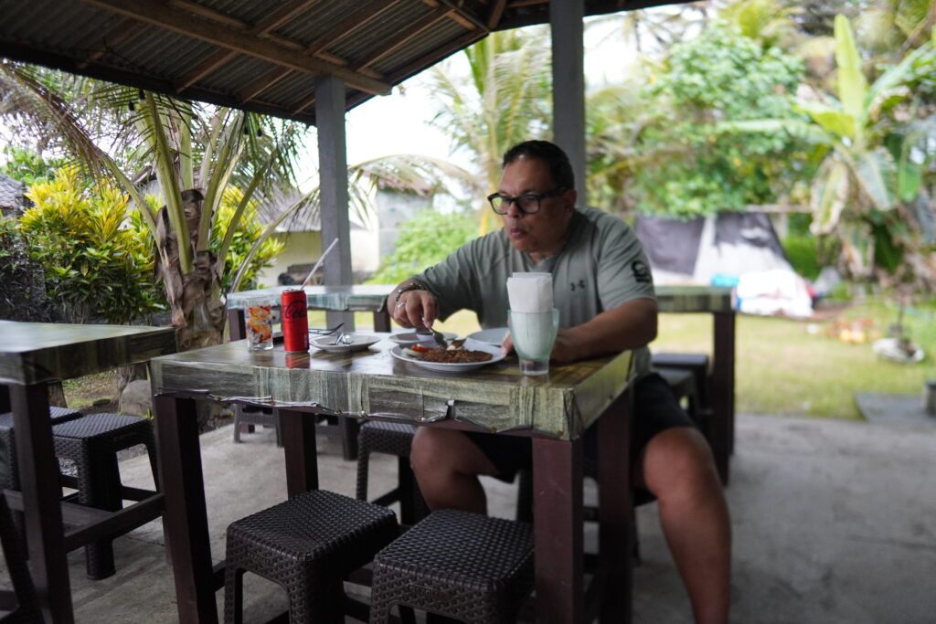 Sambil menunggu pesanan Kerapu Bakar dan plecing kangkung disiapkan, Michael sempat mengunjungi tempat penangkaran penyu dan merekam proses konservasi untuk dokumentasi pribadinya. Setelah makan siang, ia kembali ke Pantai Pasut untuk melanjutkan sesi ATV. Meski sempat diguyur hujan, Michael tetap menikmatinya dengan penuh antusias, memacu ATV di atas pasir basah yang memantulkan langit kelabu.