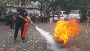 Selain simulasi evakuasi, kegiatan juga dilanjutkan dengan pelatihan pemadaman api menggunakan Alat Pemadam Api Ringan (APAR). Para karyawan diberikan praktik langsung cara menggunakan APAR agar mampu melakukan penanganan awal jika terjadi kebakaran.